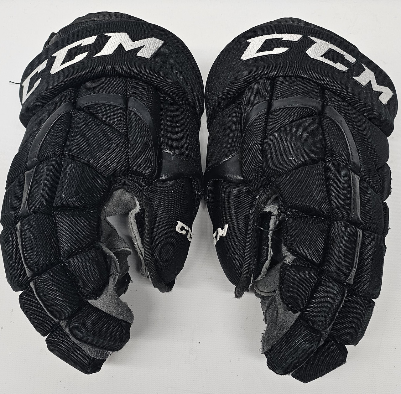 Condition: Used, Hole in left palm, hole in left pointer finger, hole in multiple fingers on right glove, Cut thumb loops. *see pictures*