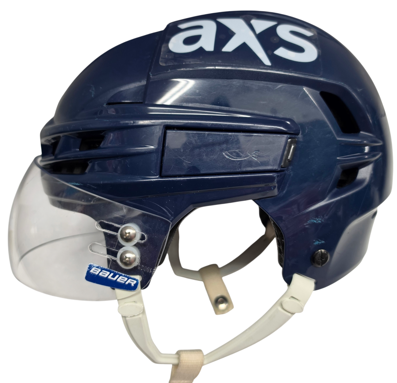 Specs: TACKS WEB FOAM, BAUER VISOR, SPONSOR DECALS ON BOTH SIDES, #3 ON FRONT AND BACK OF HELEMT, AHL DECAL ON BACK.