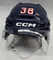 Specs: NEST TECH 3D LINER, BAUER VISOR, WOLFPACK DECAL ON BOTH SIDES, #38 ON FROM AND BACK, AHL ON BACK, 50 HARTFORD HOCKEY STICKER ON BACK.