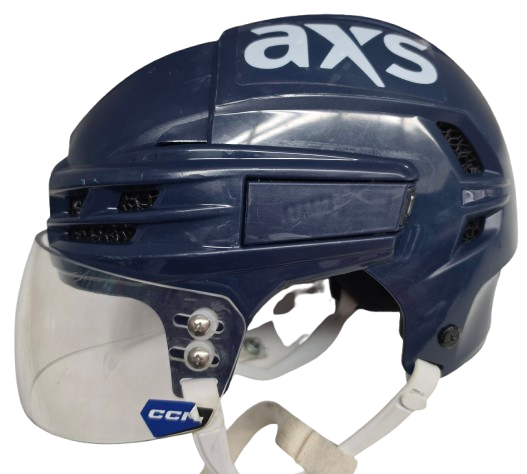 Specs: TACKS WEB FOAM, CCM VISOR, SPONSOR DECALS ON BOTH SIDES, #55 ON FRONT AND BACK OF HELEMT, AHL DECAL ON BACK.