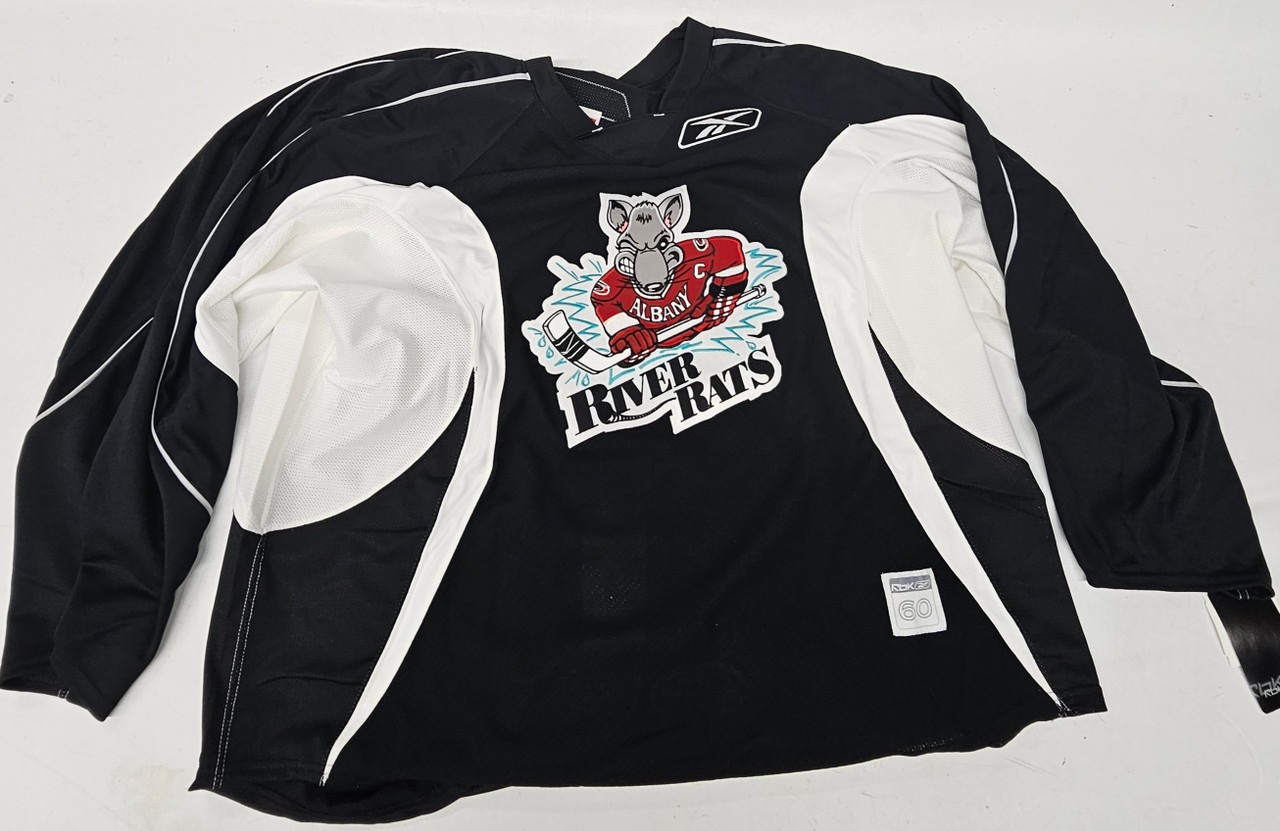Specs- Black/White colors, River Rats crest on front, Rbk logo left upper chest, AHL logo on lower back