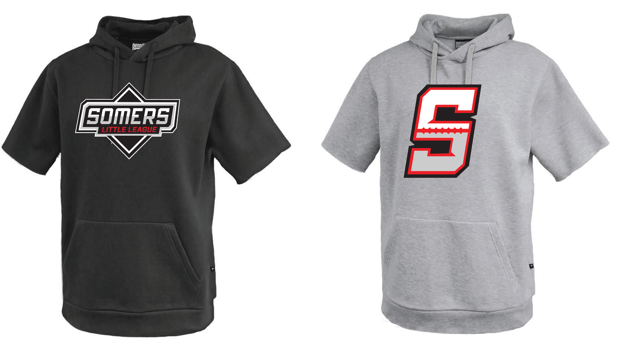 Click the button below to add the Somers Little League Pennant Short Sleeve Hoodie Adult and Youth to your wish list.