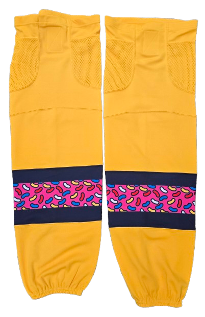 SP CUSTOM HOCKEY SOCKS MADE FOR THE SPRINGFIELD THUNDERBIRDS ICE-O-TOPES NIGHT.