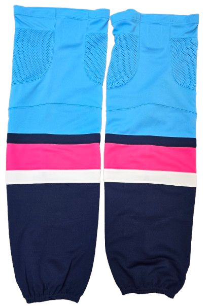 SP CUSTOM HOCKEY SOCKS MADE FOR THE SPRINGFIELD THUNDERBIRDS PINK IN THE RINK NIGHT.